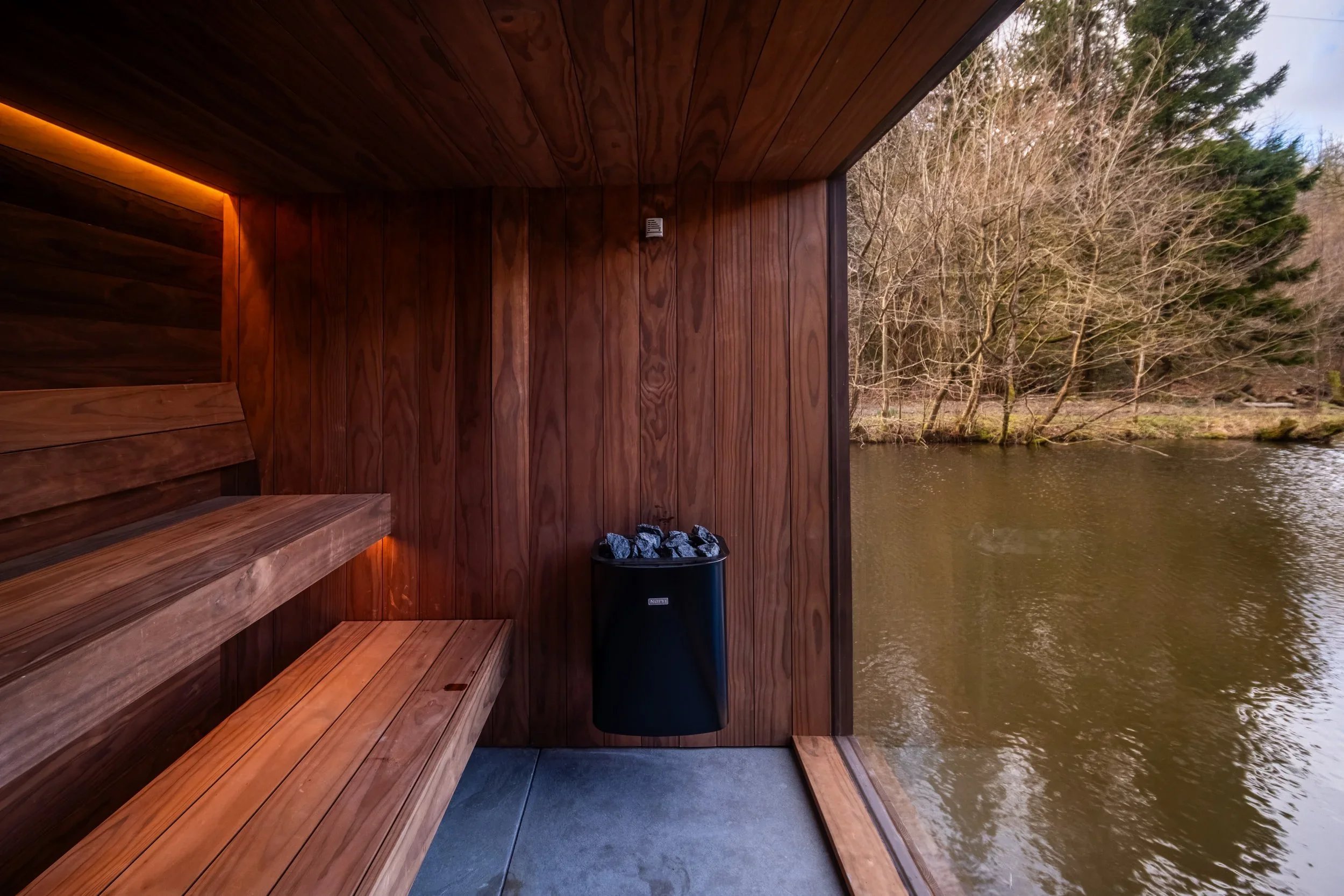 We chose an electric heater rather than wood-burning, so guests can step in and use the sauna straight away without worrying about fire-lighting.